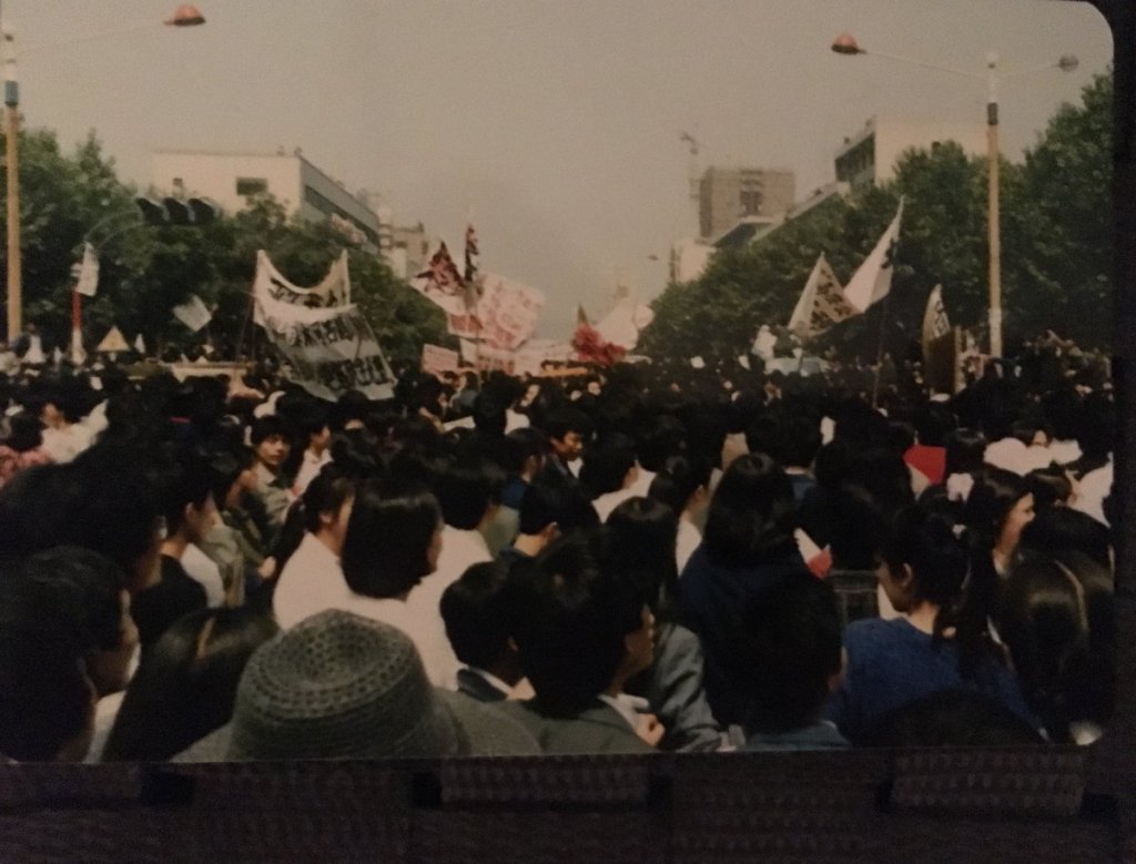 AW: Martial law was declared only in Beijing, but things took a more serious and solemn turn in Changsha after the martial law declaration. People were angry and dismayed, and protested against martial law the next day. One student from another university who was marching in the demonstration […] saw me on the sidewalk observing, and called out in English: ‘How can our government be so cruel?’